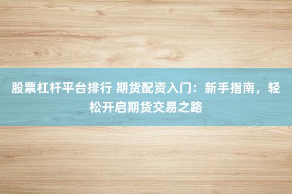 能加杠杆的炒股平台 期货助力配资:杠杆放大,掘金期市!